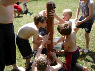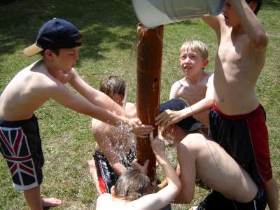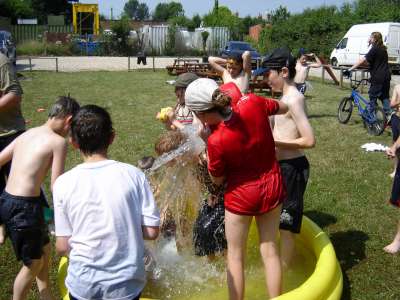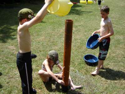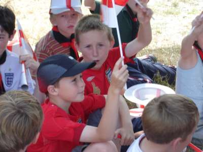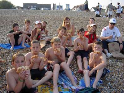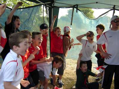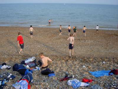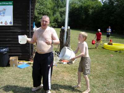 OVER THE WEEKEND OF JULY 1ST AND 2ND 2006 WE HELD A SMALL CAMP BASED AT OUR HQ - HEDLEY HALL, THE PACK SET THE CAMP UP AS PART OF OUR REGULAR THURSDAY NIGHT ACTIVITIES, SOME OF THE PACK CAMPED ON THE FRIDAY NIGHT WITH THE REST OF THE GROUP ARRIVING AT 8.15 AM ON THE SATURDAY MORNING THEY THEN ALL CAMPED UNTIL THE SUNDAY. WE WENT FOR A VISIT ON THE SATURDAY TO THE OBSERVATORY SCIENCE CENTRE NEAR HAILSHAM, EAST SUSSEX, WE ALL WATCHED THE WORLD CUP QUARTER FINAL BETWEEN ENGLAND AND PORTUGAL UNDER A GAZEBO AT THE EDGE OF A PARK IN EASTBOURNE, WE FINISHED THE DAY BY GOING TO PEVENSEY BEACH TO PADDLE AND PLAY GAMES ON THE BEACH WE ALSO HAD PIZZAS ON THE BEACH FOLLOWED BY ICE CREAMS. SUNDAY WAS AGAIN A SCORCHING HOT DAY SO AFTER A BREAKFAST OF PANCAKES AND CEREALS WE LAUNCHED INTO A MORNING OF ITS A KNOCK OUT WET GAMES AND FINISHED WITH A HUGE WATER FIGHT WHERE EVEN THE BIG KIDS {OR ADULT LEADERS } GOT A DRENCHING, SUNDAY LUNCH WAS A B.B.Q AFTER WHICH IT WAS TIME TO SAY GOODBYE AND GO HOME.