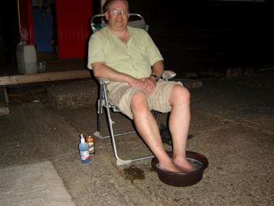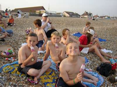 EMMBROOK CAMP COOKING PIZZAS FROM PIZZA HUT AND ICE CREAMS ON THE BEACH THE END OF A HARD DAY AT CUB CAMP, SEAN SOAKS HIS FEET AND FOR AKELA ITS ALL TO MUCH
