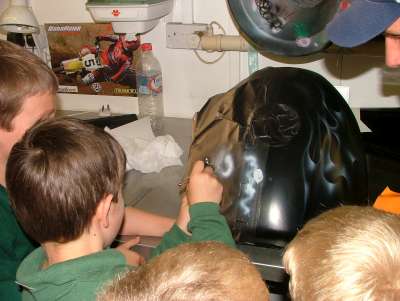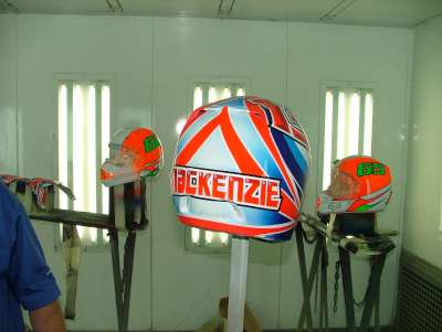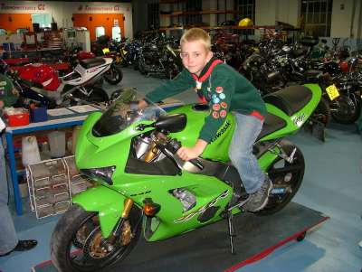 Mike Cragg arranged a trip for us to visit Altamura Motorsport. (http://www.altamura.co.uk/) in Camberley in Seans words " Put simply these are specialist motorcycle repairers and custom painters. However, that phrase does not do them justice and is rather akin to saying that Michelangelo was an adequate painter and decorator and that he did a wonderful job on the Sistine chapel with a drop of vinyl silk magnolia" The pack started by filling out a work shop job sheet for a damaged motorcycle before moving on and seeing a racing tyre being fitted,a tour of the photographic studio where the chance was taken to pose on a motorbike, a tour of the spray shop where we saw the still wet crash helmets belonging to the English and Irish motorcross teams before the teams had even seen them, a look around the custom spray shop with a chance to try air brushing, then a tour round all the bikes finished with a harleydavidson being started for them and did we mention the hummer that was there as well ?. thanks very much Mike.
