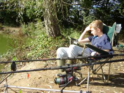FOLLOW ONES CUBS PROGRESS AS HE ATTEMPTS TO GAIN HIS CHIEF SCOUTS SILVER AWARD HE HAS GAINED ALL HIS CHALLENGE BADGES AND RUN A EVENING OF GAMES FOR THE PACK WHICH HE ENDED WITH A TUG OF WAR CHALLENGE BETWEEN THE SIXES. HIS PERSONAL CHALLENGE HAVING GAINED A INTEREST IN FISHING FROM BOTH HIS FRENCH GRANDFATHER AND HIS OWN FATHER IT SEEMED LIKE A IDEAL PLACE TO START WITH A SPORTING CHALLENGE IT THEN BECAME APPARENT THAT BOTH THE AKELA AND HIS BROTHER WHO RUNS THE LOCAL EXPLORER GROUP WERE KEEN CARP FISHERMEN, SO A CUNNING PLAN WAS HATCHED, THE CHALLENGE WAS DECIDED UPON AND AGREED, IN ORDER TO GAIN THE CHALLENGE HE WOULD GO FISHING WITH AKELA AND HIS BROTHER TREVOR AND WOULD ATTEMPT TO CATCH A CARP THAT WOULD WEIGH MORE THAN 10LB . 1ST TRIP WAS SATURDAY OCTOBER 7TH, HARD WORK THIS FISHING LARK. WHERE ARE THE FISH THEN ?