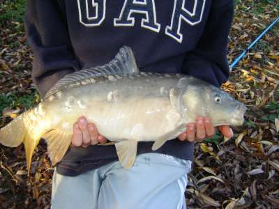 2ND TRIP FRIDAY 27TH NOVEMBER THE WEATHER LOOKED GOOD, VERY MILD AND SUNNY SO IT LOOKED IDEAL FOR A QUICK AFTER WORK TRIP TO A LOCAL CARP LAKE, WE FISHED SOFT HALIBUT PELLETS ON HAIR RIGS IN ABOUT 6FT OF WATER AND ABOUT 15FT FROM THE BANK A SMALL COMMON CARP TO START WITH. FOLLOWED BY A 6LB COMMON CARP