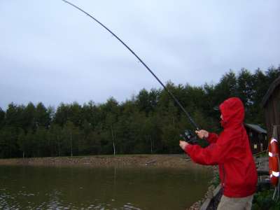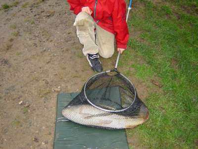 THIS LOOKS LIKE A BIGGER FISH LOOK AT THE BEND IN THE ROD IT ONLY JUST FITTED IN THE LANDING NET